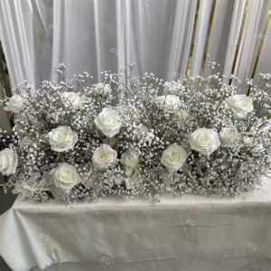 IFG Home Occasion Babybreath and White Rose Aisle Flower Runner for Wedding Floor Arrangement Decor