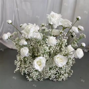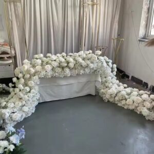 IFG Wholesale Elegant Floral Artificial Silk White Flower Table Runner for Wedding Arrangements Decorations
