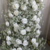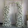 IFG 7ft tall white rose baby breath horn flower arch arrangement for wedding backdrop decoration,all the flowers arch are made by handmade silk flowers ,quality silk flowers,this model horn arch with 210-230cm height and 27inches width ,if need more actural pics and video plz kindly feel free to contact us .+8613752719525