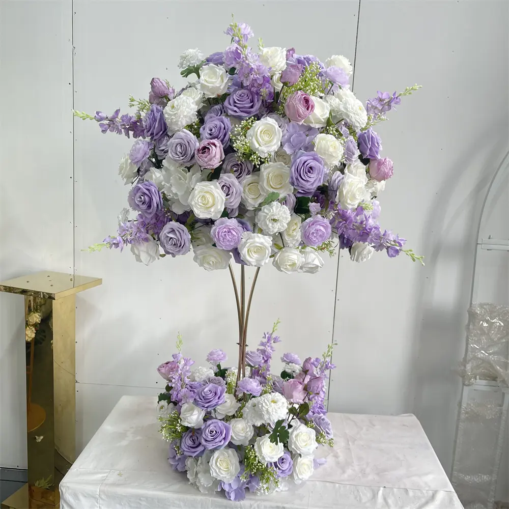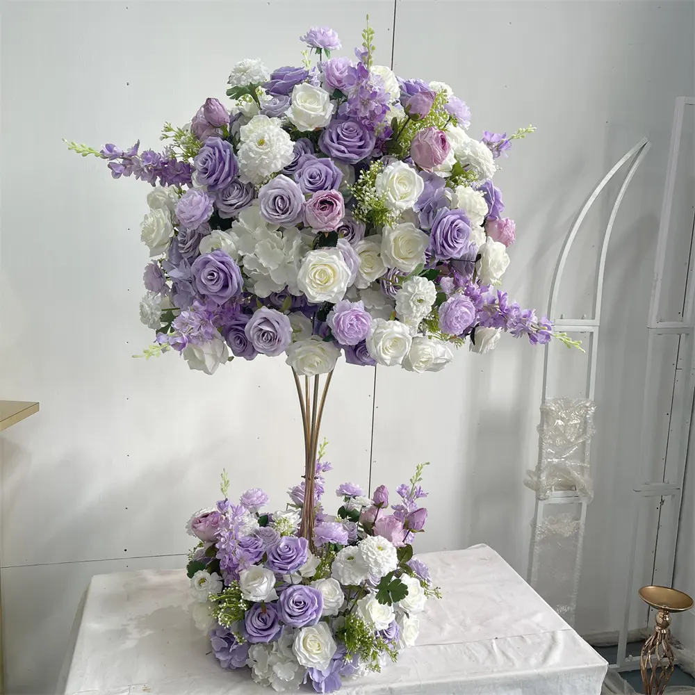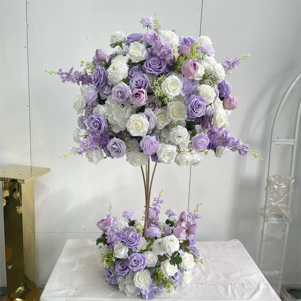 IFG Wholesale 24inch Purple and White Artificial Flower Ball Arrangement for Wedding Party Centerpiece